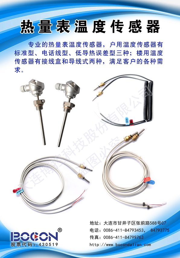 Professional heat meter temperature sensor, household temperature sensor has three types: standard type,telephone line type and low thermal conductivity error type.Building temperature sensors have junction box and wire type, to meet the needs of customers.